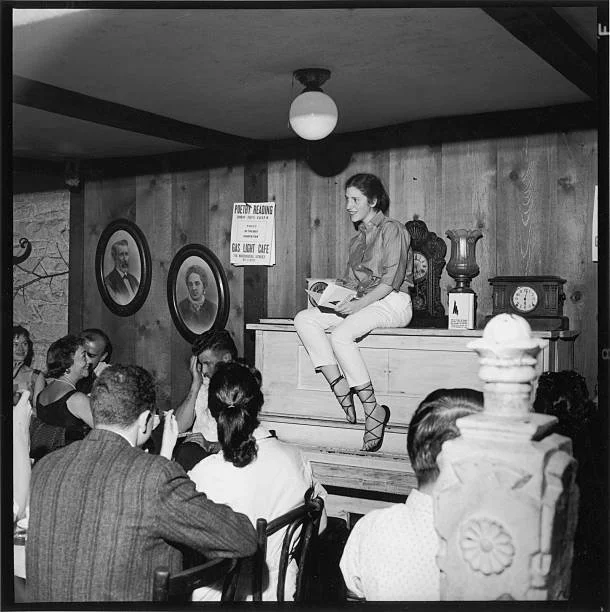 You can really make people angry if you don’t fill in the gaps the same way that they do, in my little community. I’m interested in that. I, in some ways, regret explicitly saying anything about transness because I’m a cis person. I think I used the phrase “trans-inclusive Sapphics” at some point, and that is catchy and solid-sounding, but I don’t think the book needs to be framed in that way—and I think that, if you do frame it that way, then it’s sort of an embarrassing claim. There’s a lot of trans poets writing poetry, no one needs me to do that. But, as someone in love with a trans woman, it’s a really big part of the way I relate to love poetry. How the body of the beloved is handled and, I don’t know, politics, did I get to politics? Diane di Prima was like a huge dyke, y’know, I mean she was bi. She made hay with her politics and she made hay with her sexuality, but kind of the other way. She focuses more on the stuff with the guys because the guys were famous. She was literally making money writing about her sex life, or her imaginary sex life, with men, many of whom were also bi or gay or whatever. So she’s a natural companion to this work. There’s just that one really hot photo of her sitting on a piano…