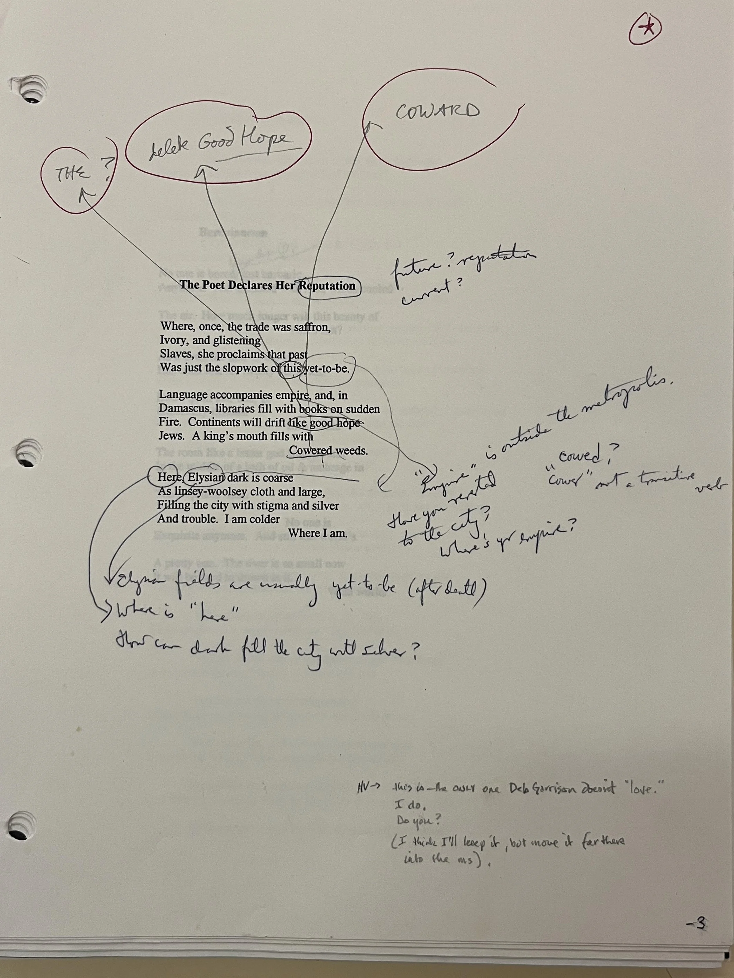 Another stanza my friend K. and I puzzled over was from “Fragment on Dissembling”: